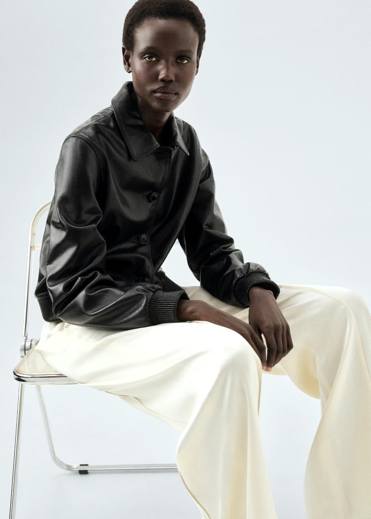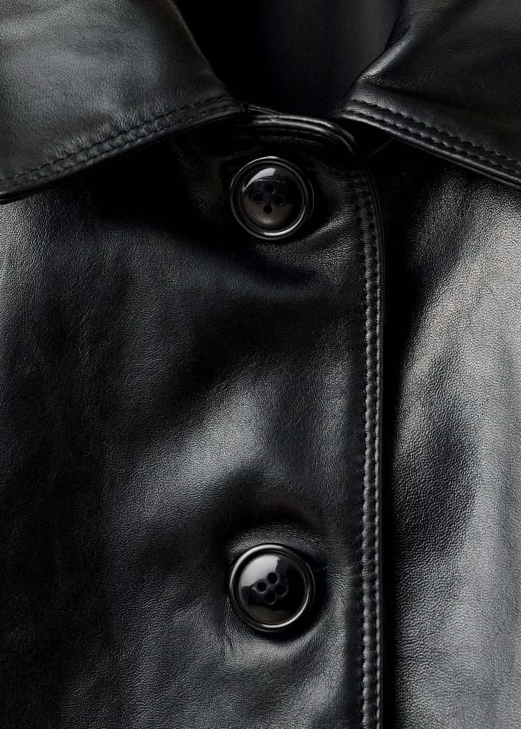 100% Lambskin leather. Short design. Shirt Collar. Long sleeves with elastic cuffs. Two side pockets. Front closure with buttons. Inner lining. Selection Collection