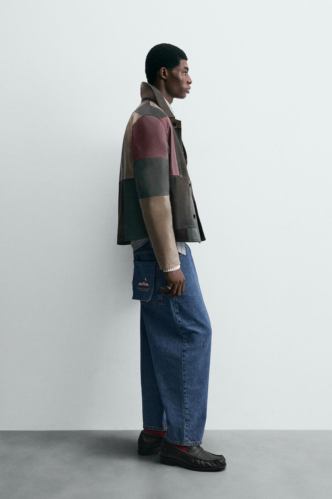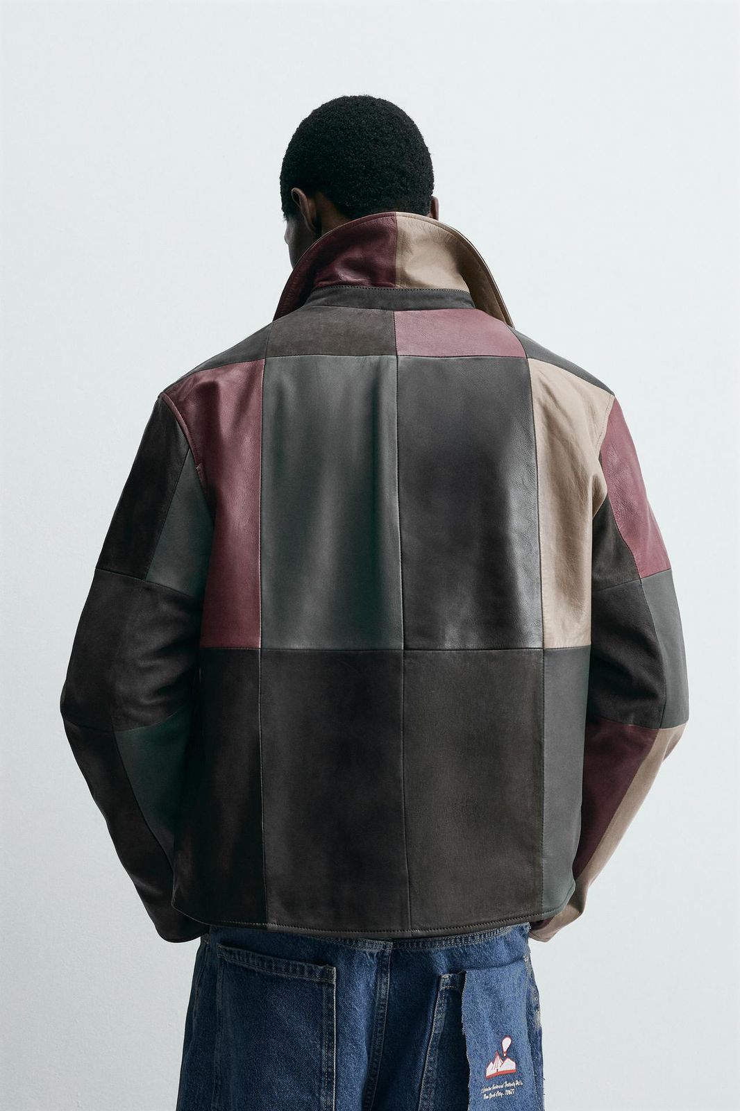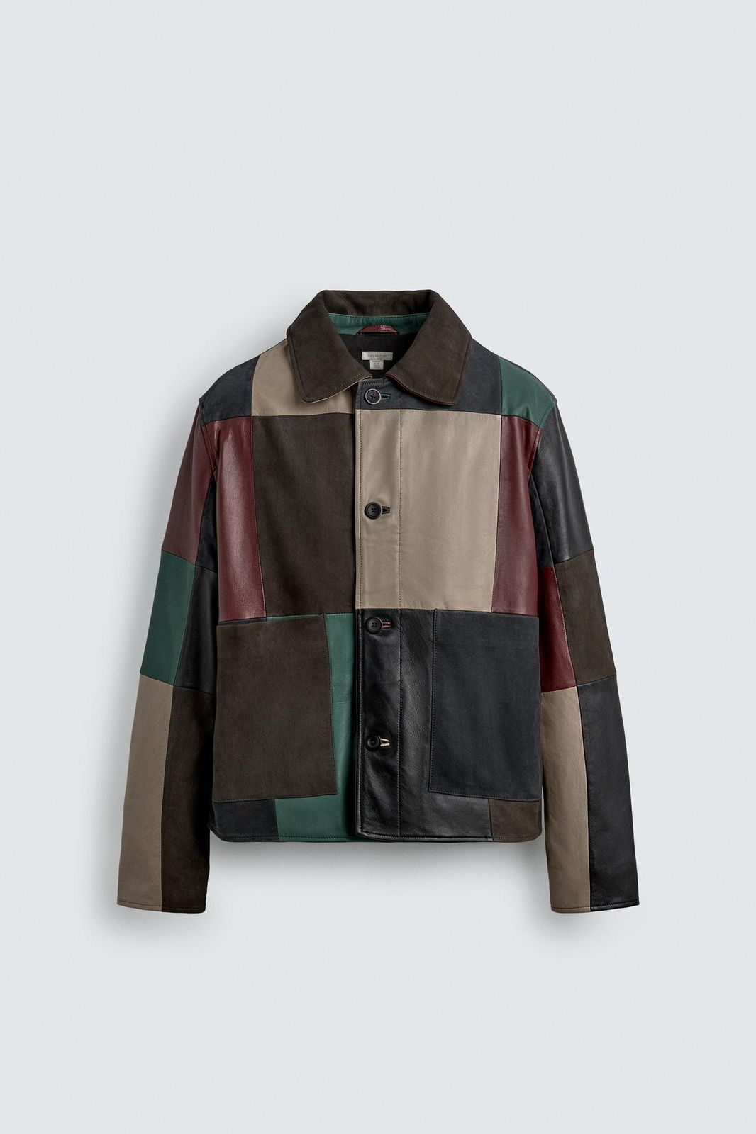 egular fit leather jacket. Featuring a contrasting notched lapel collar, long sleeves, patch pockets at the hip, an inside pocket detail and button-up fastening at the front.