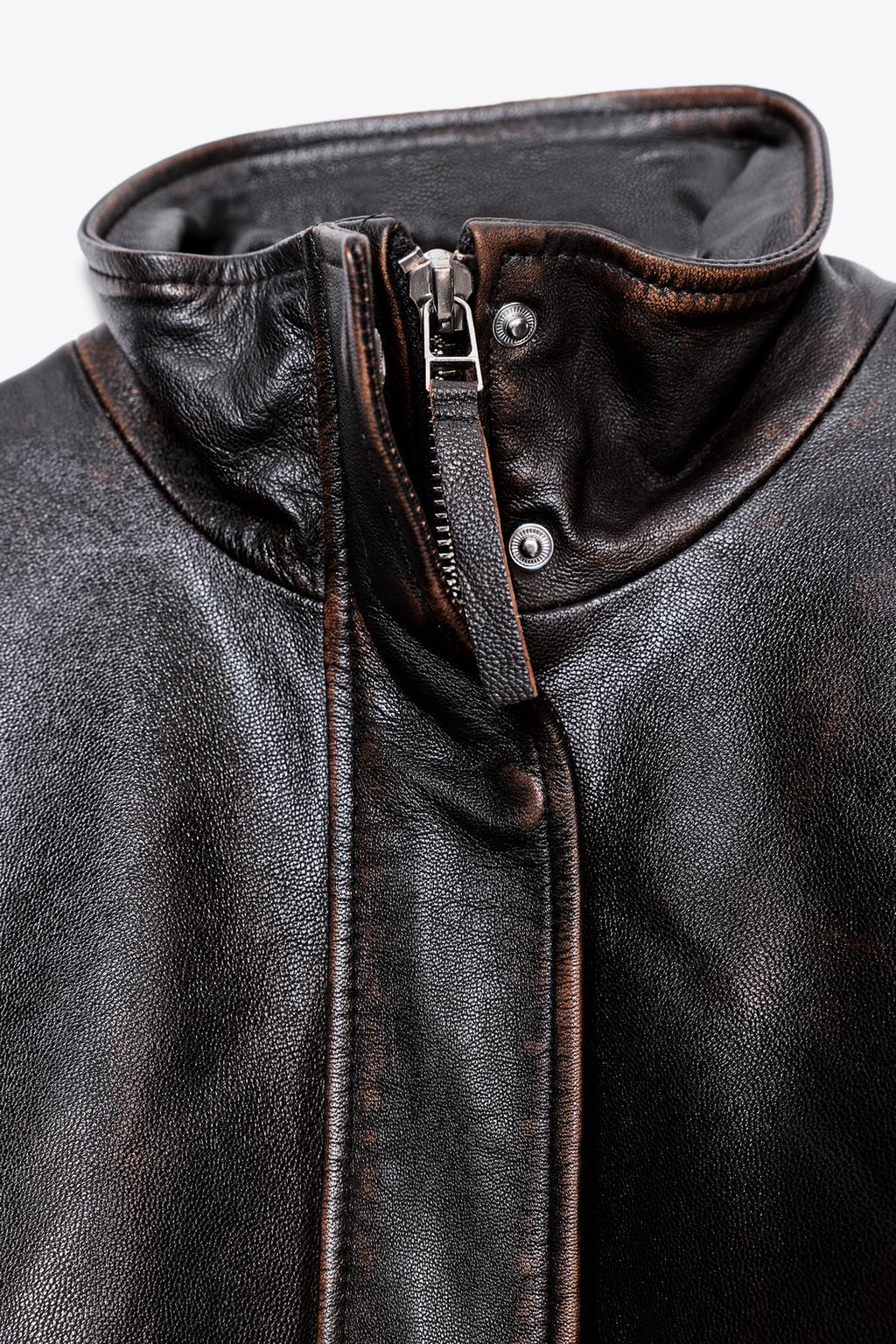 Product Name: Distressed Effect Nappa Leather Cropped Jacket