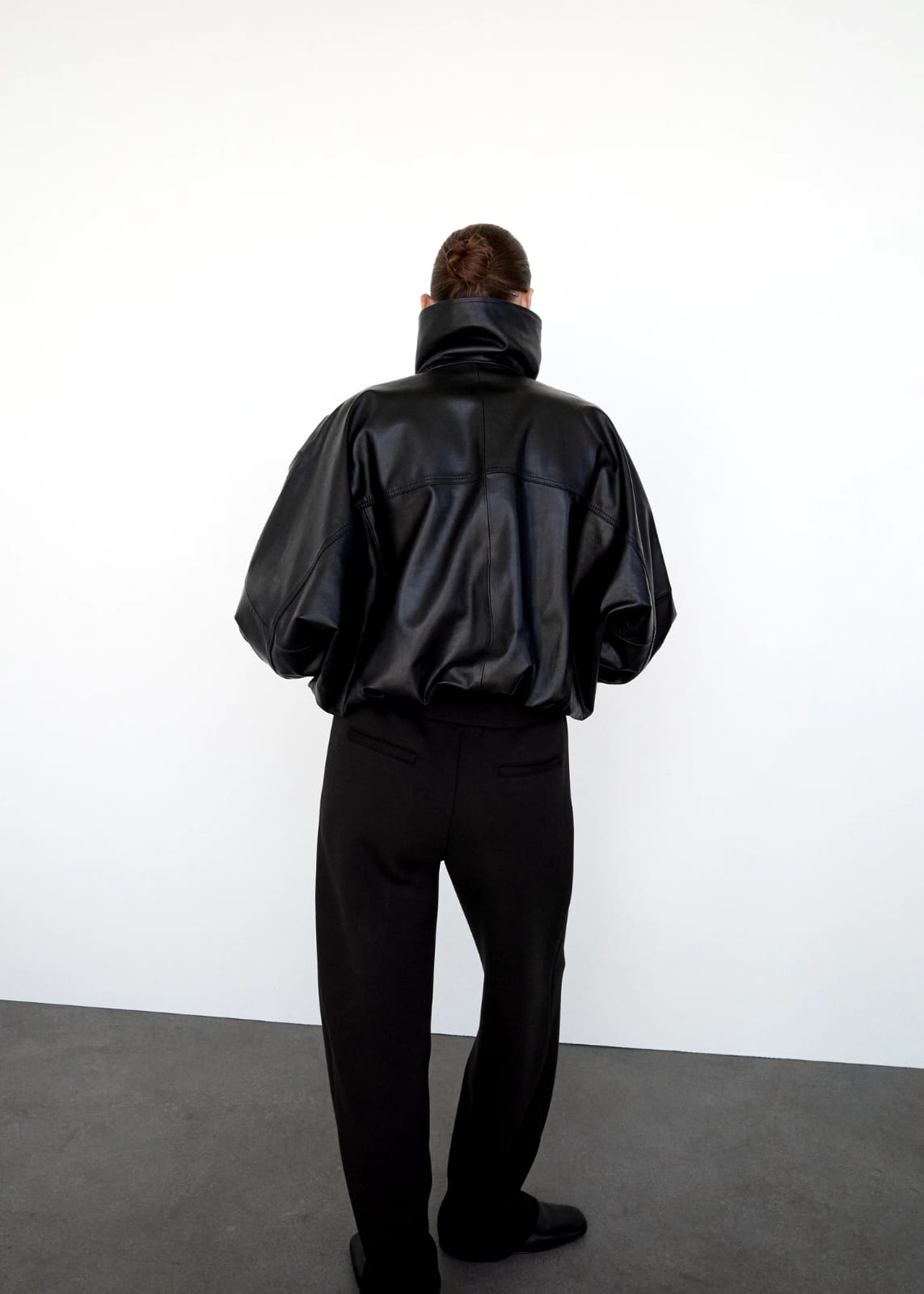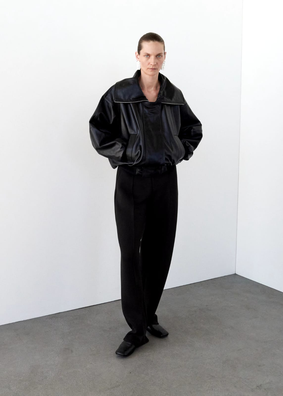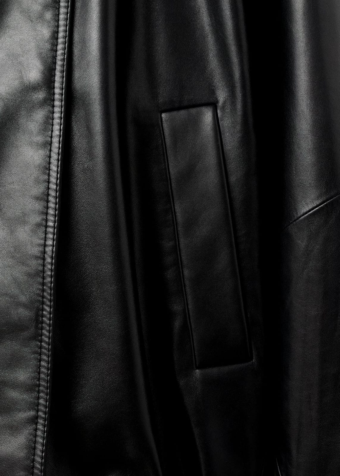 A slouchy fit and an oversized silhouette bring vintage-inspired charm to this buttery leather bomber jacket shaped by ribbing at the hem and cuffs.