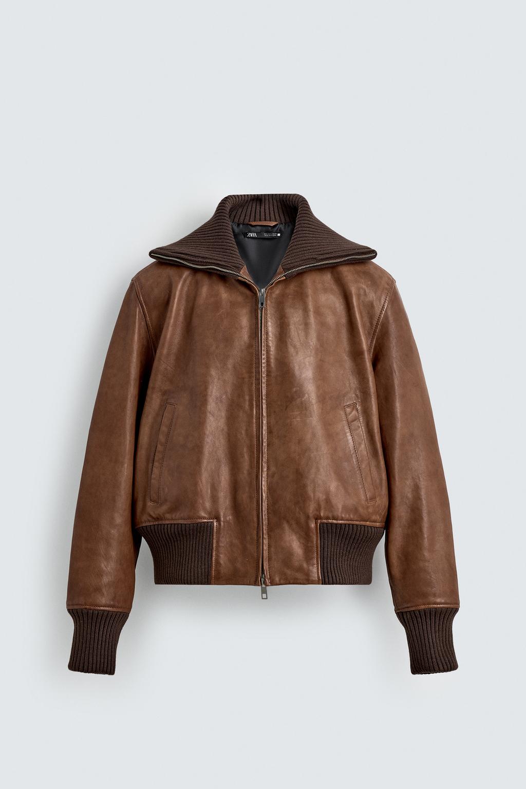 Tag: Regular Fit Leather Bomber Jacket