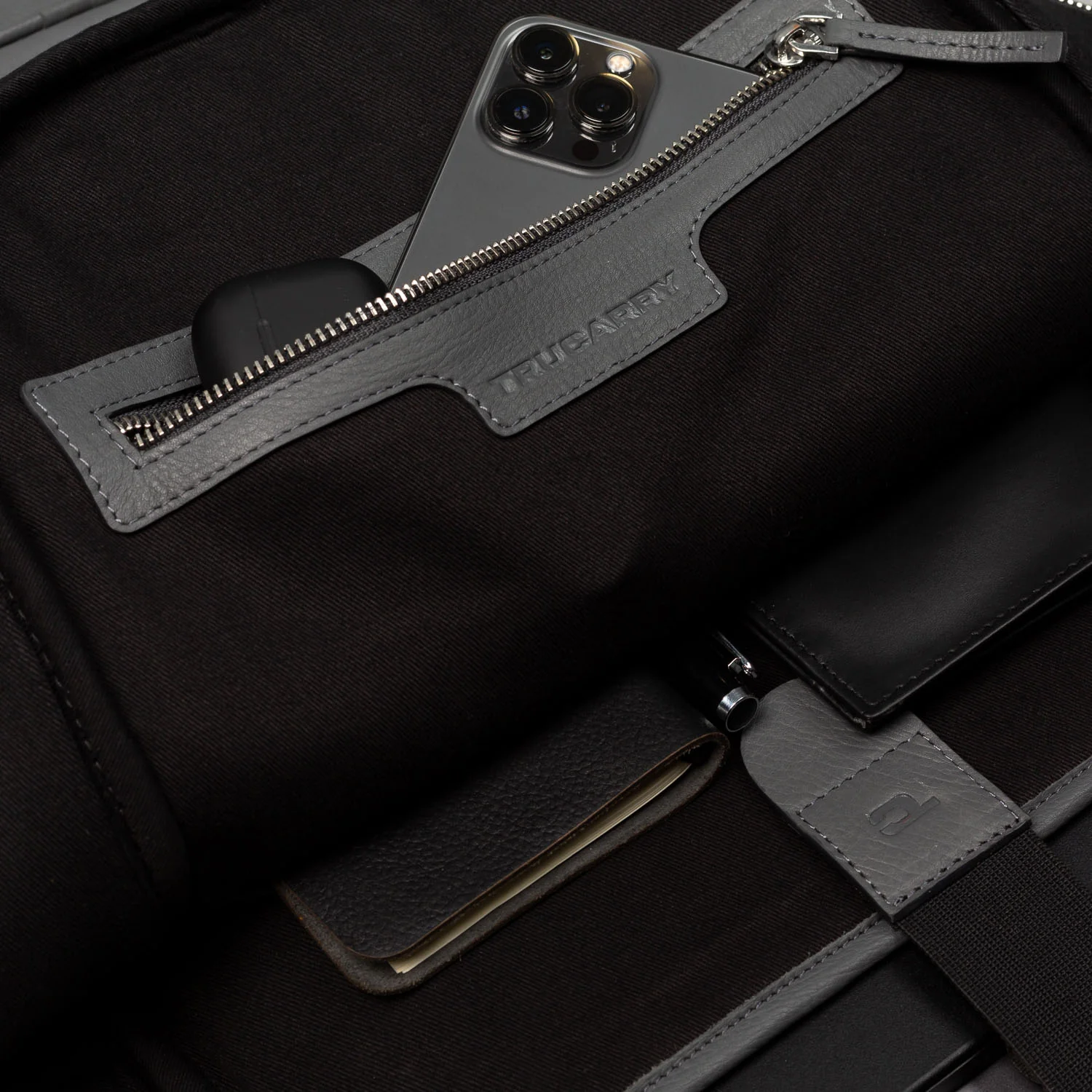 An ergonomic design compact with the supremely durable full-grain leather and a cotton twill innershell. Capturing the true essence of TruCarry bags, it is lightweight and streamlined with functionality. The efficiency is enhanced by the addition of several interior & exterior pockets and dual two-way zippers consolidated with a leather puller. Adding the nicely padded back and adjustable shoulder straps to the mix, you have a powerhouse bag of comfort and convenience.